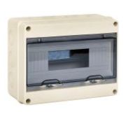Элемент щитового оборудования. Навесной, с дверцей и замком. Изготовлен из металлического сплава, серого цвета. Размеры: 400 х 300 х 140 мм. Защищен от проникновения пыли и вертикальных капель (IP31). Возможно подключение 12 модулей.